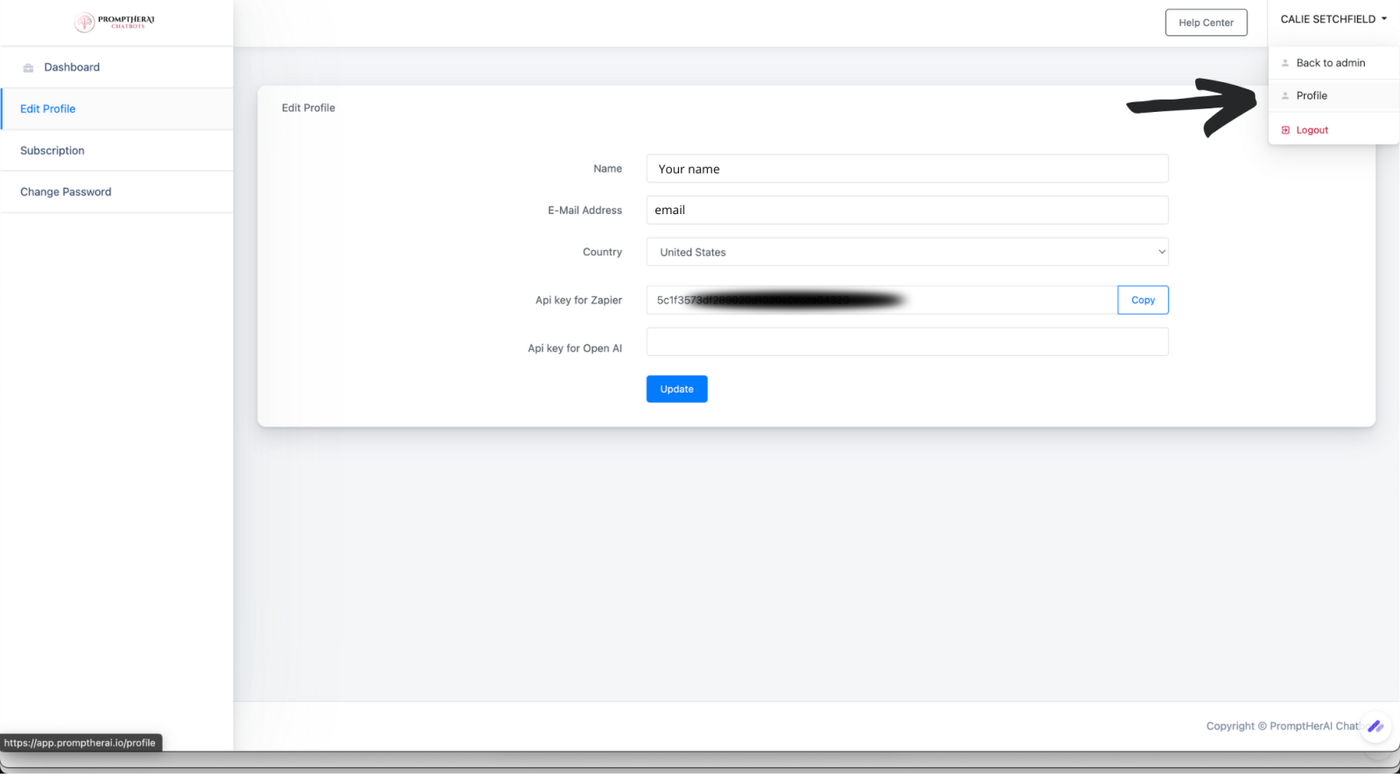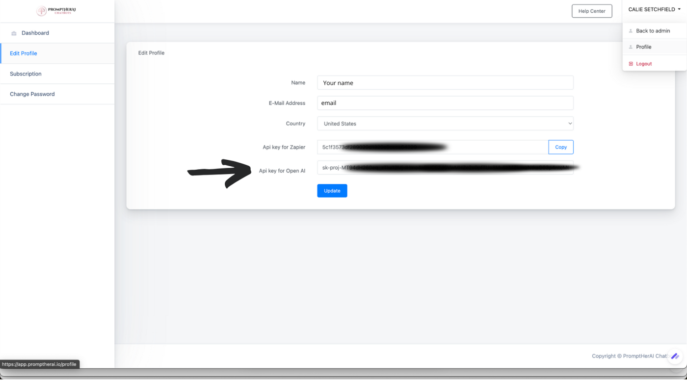 Scroll down to the OpenAI API Key field