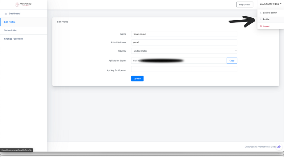 Click your profile name in the top-right corner