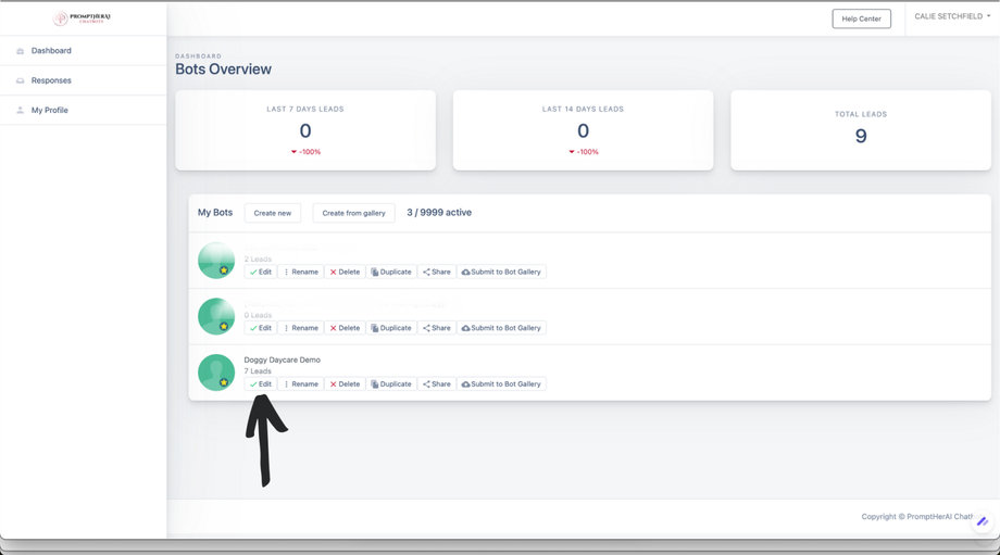Click on the bot you want to use and click Edit