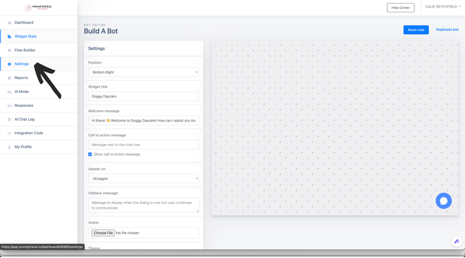 Go to your Bots tab